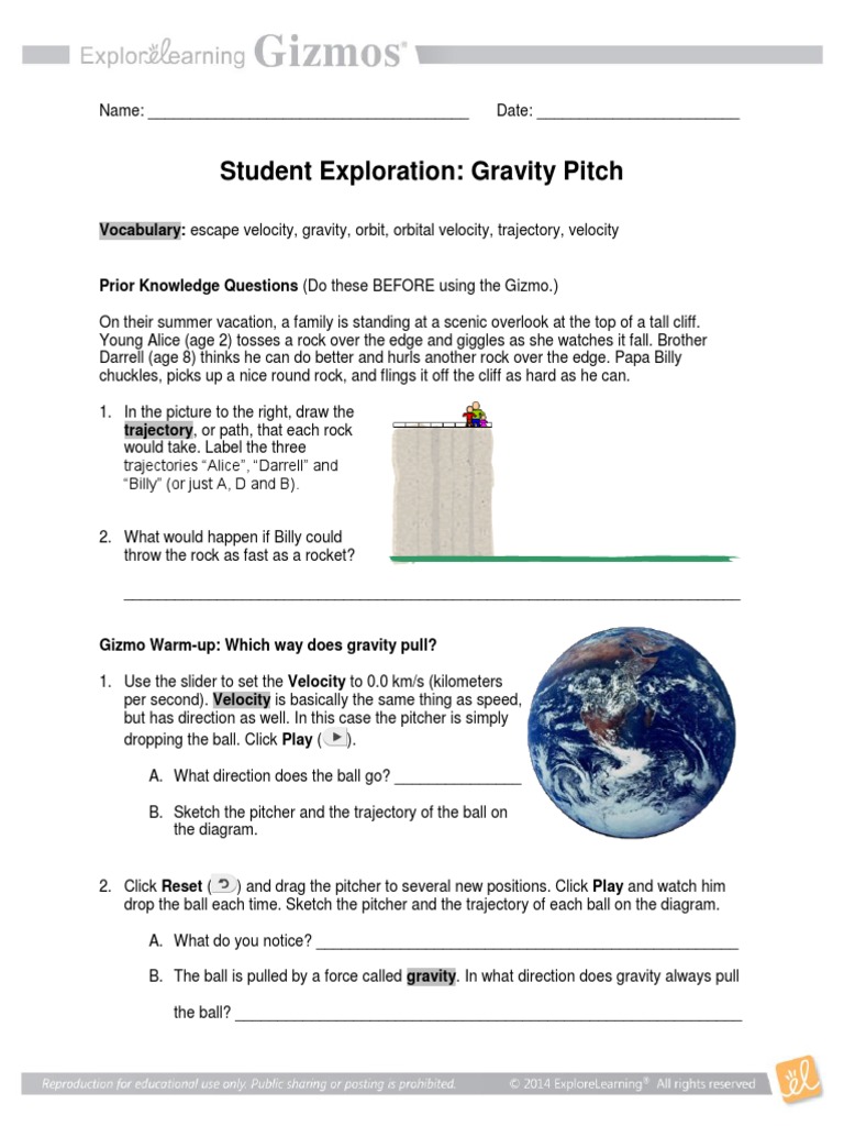 Gravitypitchse 1 Docx Name Kaleia Francis Date Student Exploration Gravity Pitch Vocabulary Escape Velocity Gravity Orbit Orbital Velocity Course Hero from www.coursehero.com In this gravity pitch worksheet, students first answer prior knowledge questions, then use the gravity pitch gizmo program to complete a set of activities. Young alice (age 2) tosses a. Thank you very much for downloading gizmo answer key gravity pitch. Merely said, the gizmo answer key gravity pitch is universally compatible with any devices to read. Imagine a gigantic pitcher standing on earth, ready to hurl a huge baseball. Acquire the gizmo answer key page 13/25 student exploration gravity pitch. Acquire the gizmo answer key gravity pitch. Answers to titration gizmo lab sheet food.